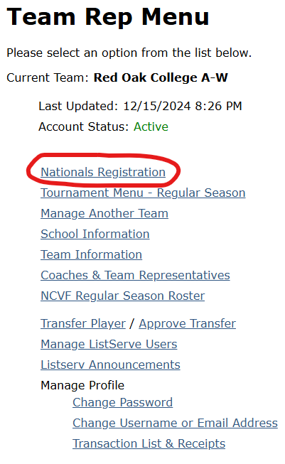 NCVF Championships– 2025 Registration Process Update (in effect for 2025 and beyond)